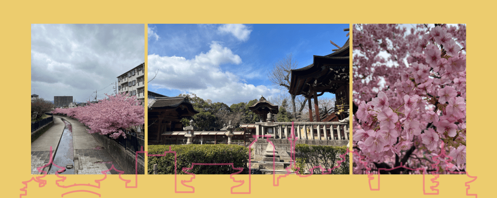今天是開車回家的一天。早上先去了阿智神社參觀,高處的風景很好,神社本身也非常美,很值得走上去看一下。回到京都先去淀水路看河津櫻,天氣很冷風超大,但是櫻花開的很滿很美。