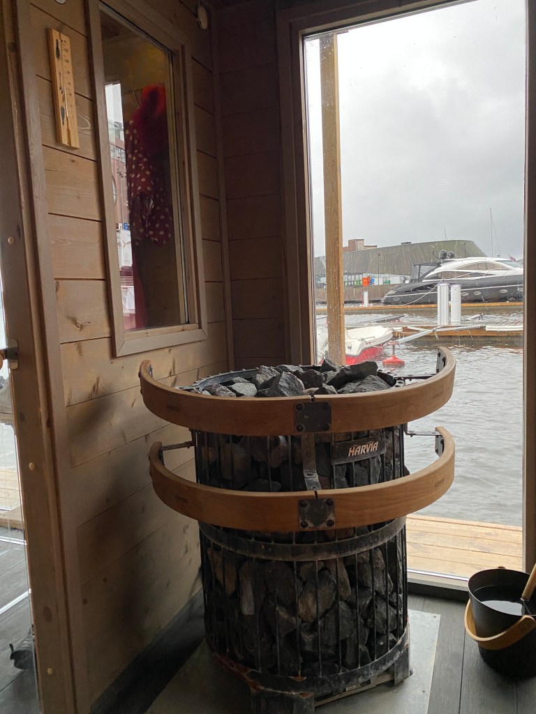 沒有人的木屋很安靜,可以隨著自己的步調加清水,也可以加進自己喜歡的精油味道。每個角落我都試著坐坐看,體會一下每個位置看出去的風景。每次渡輪進港出港的時候,海浪都特別的洶湧,小木屋會在浪裡面搖著晃著,被蒸得熱熱的身體也就跟著搖搖晃晃,閉上眼睛好像在做夢一樣。