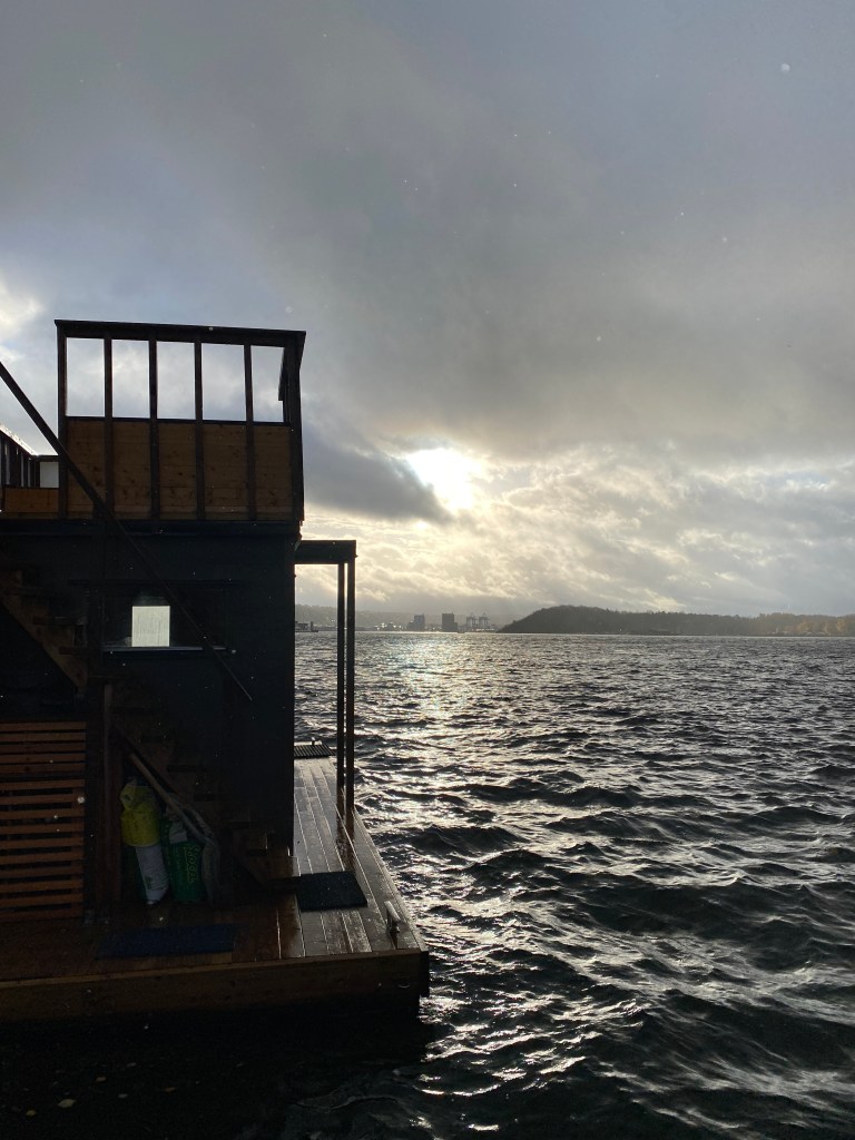 於是上星期開始我們早上開始了新的行程,在陰雨綿綿又天色陰暗的秋天早晨,兩個人起床穿著運動服,或走或跑的到奧斯陸港口邊,三公里的距離不長不短,換上泳衣,開始體驗海邊的三溫暖。真的開始做了之後才發現,海水並沒有想像中的冰冷,整個身體熱到不行之後進入海水是很棒的體驗,全身冰冷之後進去小木屋,撒上加了精油的水,讓蒸汽充滿整個木屋,身體一下子就熱起來了,感覺是一個對身體很好的晨間活動。