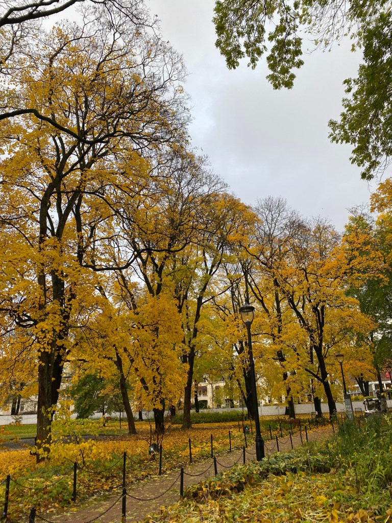 於是我在陽光的陪伴下走路回家,因為有陽光,路上的秋色變得更加濃郁,秋天的黃色更深了,走在王宮公園的路上,顏色都耀眼的不得了,前面的路好像都在發光,滿眼的秋色,每棵樹都好美,每種顏色都濃得化不開,每一眼都是秋天的美,一邊走一邊覺得,有出門真的太棒了,還好沒有躺回床上睡覺。