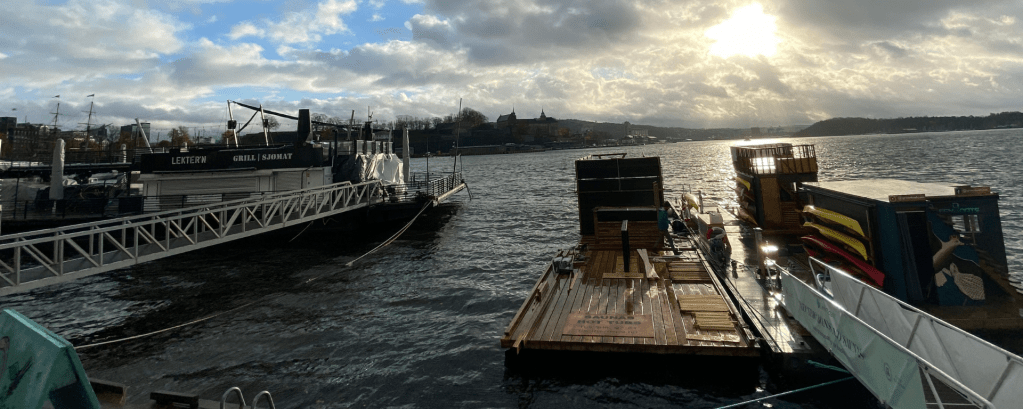 前幾年奧斯陸市區的海邊陸續出現了一些浮在海面上的小木屋,沿著奧斯陸港一整圈,從東邊的歌劇院附近開始,到西邊的郵輪渡口為止,夏天的時候會看到有人穿著泳衣在裡面開PARTY,跳進海裡游泳之類的,每次經過我都想說這好像很有趣我也想要試試看。