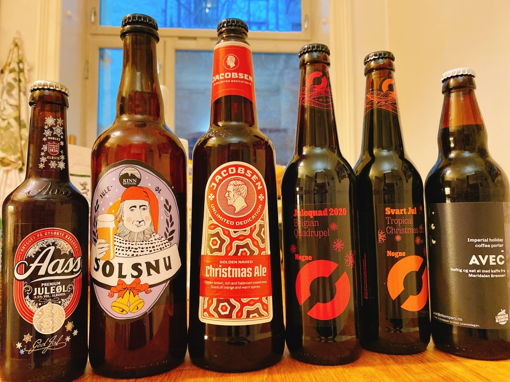 而Jul原本的慶祝方式就是大喝啤酒,所以在聖誕節這段期間,大的啤酒廠商跟精釀啤酒廠商們都會推出Juløl,聖誕節啤酒。每家的口味都不大一樣,相同的是都加了很多各式各樣的香料,聞起來喝起來都很有冬天的味道,荳蔻、肉桂之類的,酒精濃度也比較高,質感也是深色濃郁的啤酒質感。每年這個時間挪威先生會買很多種不同的聖誕啤酒,喝到好喝的就再去買多一點回來,畢竟季節限定的啤酒明年也不會再有,這也是我們十二月的樂趣之一。