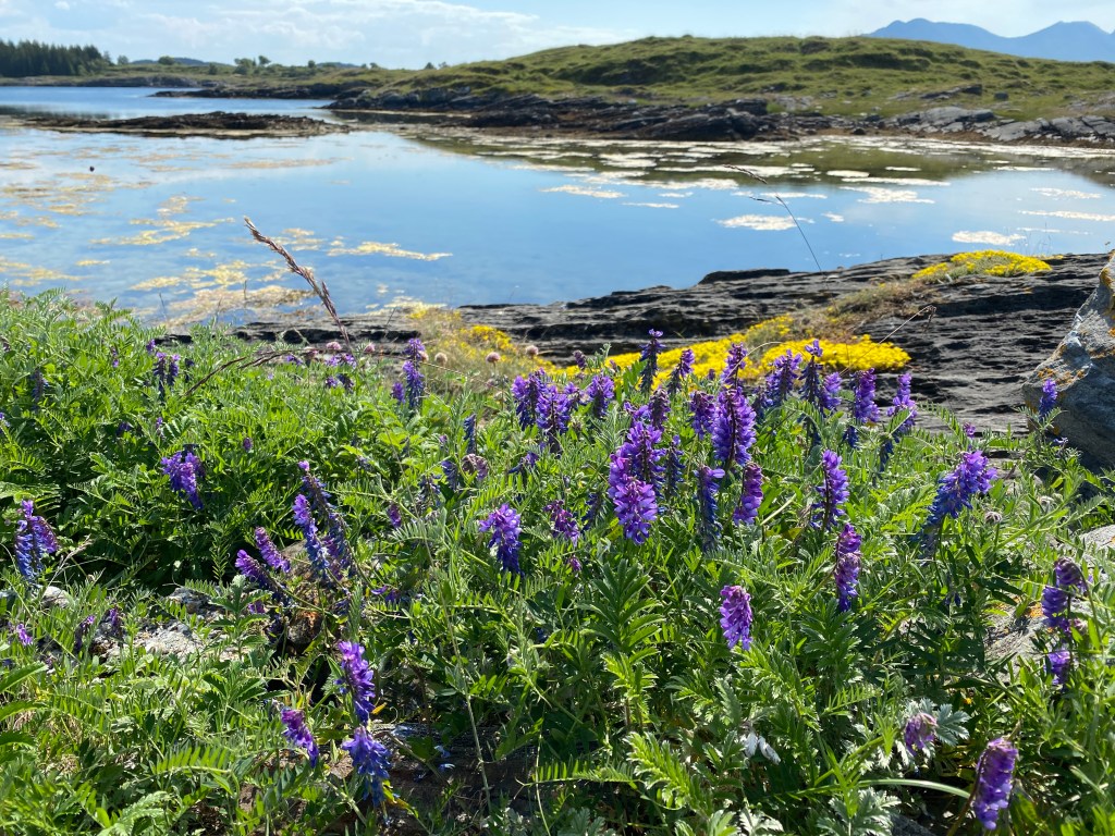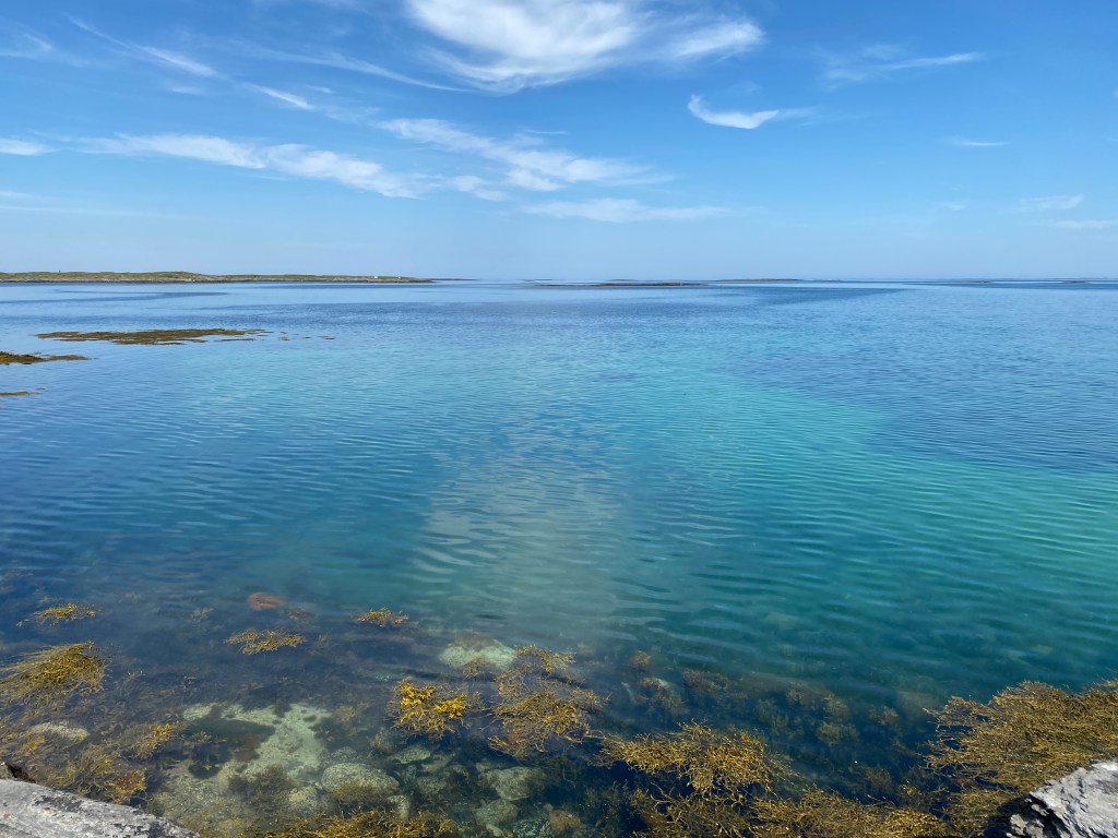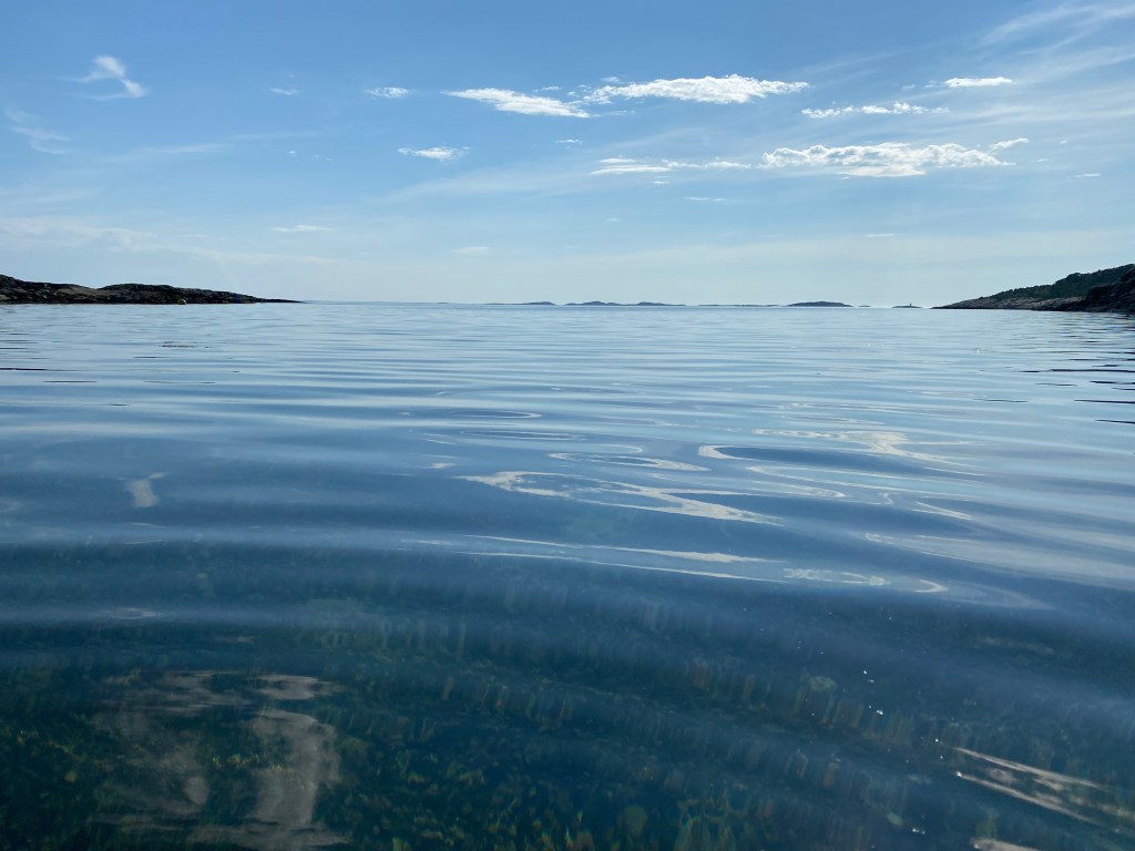 我們看著地圖上的標示選了Eidem海灘,它在島的正南邊,開車過去大概十五分鐘。找了一個空地放下東西,換好泳衣我就馬上下水了。海水有點涼,但不到冰的程度,對剛剛健走了快一個多小時覺得很熱的我來說剛剛好。水質清澈的要命,怎麼走都可以看到海底。離岸近的地方都是水草,也可以看到很多小魚跟螃蟹。整個身體泡進去覺得非常涼爽,在這樣的清澈海水包圍下面享受夏天真的太棒了。