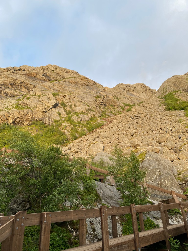 萬萬沒想到Vega Trappa就是這次旅行的大魔王。一千多的階梯聽起來好像沒有什麼,但是這個木階梯它間距有大有小,中間還有一些連接的棧道要走。每個階梯上面都有編號跟人名,整座階梯是靠大家的認領而做出來的。中間也有休息的地方,還放了很多雕塑作品。不過走到後面我只能用專注在那些人名上來轉移我大腿的痠痛,爬上1362個階梯花了我們大概四十分鐘吧。