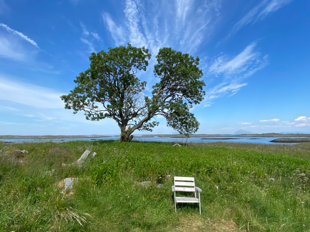 參觀完遺產中心,我們往東邊走過去,那裡有一條散步小徑,從島的北邊往西北方向走去。整條健行道路都有紅色的標示,野花野草長得很隨意,這個區域都看起來非常的天然。往陸地的方向走去,草原中長出一棵大樹,很有遠離非洲的感覺。走到那棵樹下,竟然有人貼心地放了一張木椅,可以讓旅人稍作休息。一路上只有我跟姊姊兩個人,那些訂了好旅館的人們都在哪裡呢?