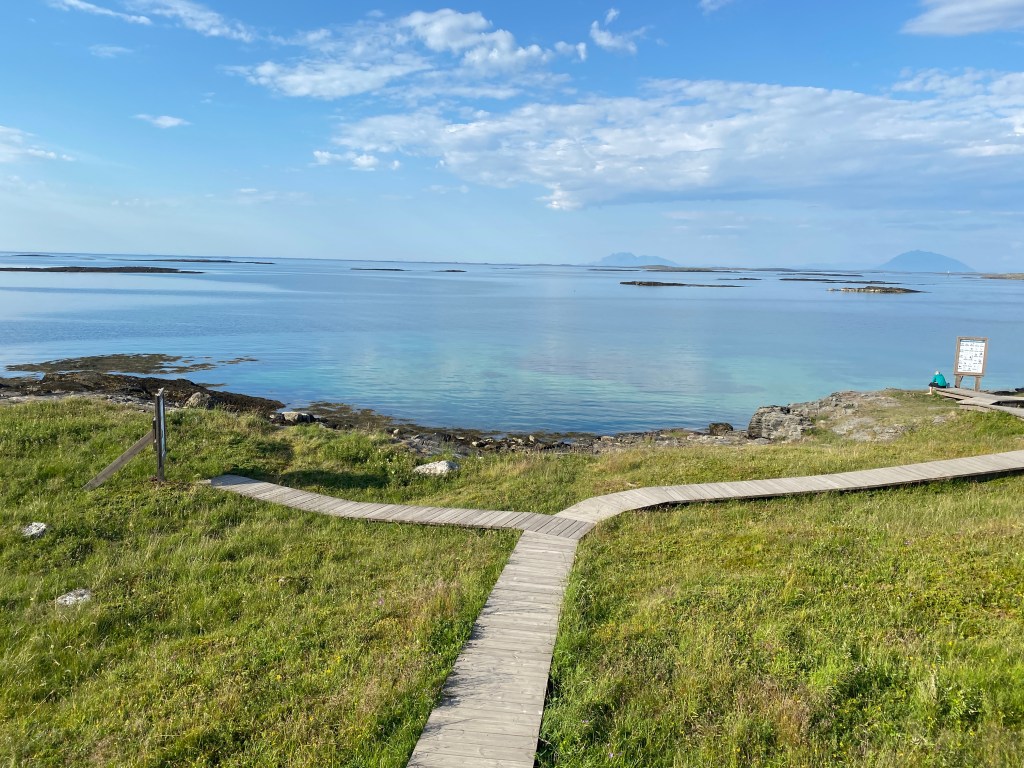 說到Vega群島,最有名的除了被列為世界遺產之外,就是Vega Trappa。Vega Trappa直接翻譯就是Vega的階梯,位於主要島嶼的西北邊,有木棧道跟1362個木階梯,可以爬到山頂去俯瞰附近的島群們,因為在西邊還可以在上面觀賞午夜的日落,是一個沒去過的挪威人也知道的景點。