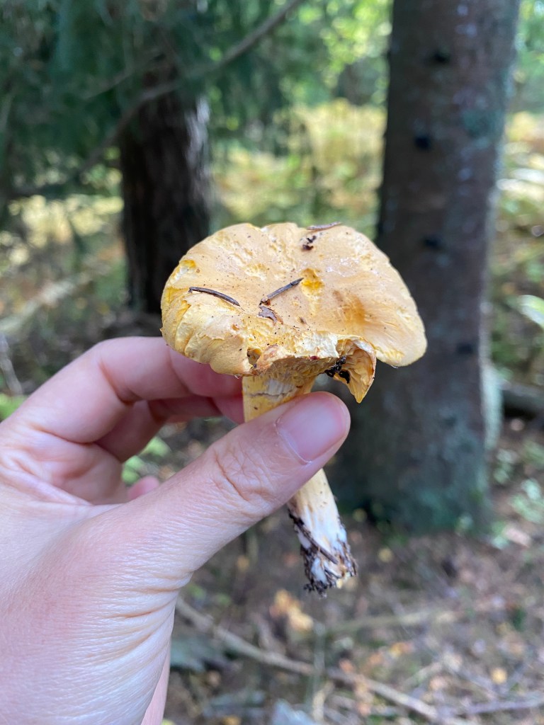 八月底九月開始下比較密集的雨之後,去森林採野菇這件事情就非常的受歡迎。在市區附近的森林裡比較容易找到的是黃色的雞油箘,味道非常鮮美,店裡一公斤大概都要四百克朗,出門一趟可以踩到的話非常的幸運。另一種是很大的Steinsopp,據說非常適合拿來煮湯。我們並不會每年都去採野菇,所以秋天的野菇我都是去家裡附近的Gutta på Haugen買,單單純純的野菇燉飯或奶油清炒就非常好吃。