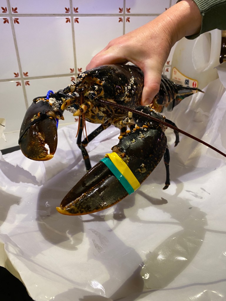 龍蝦就不一樣了。挪威龍蝦我覺得是人間極品,鮮嫩彈牙,跟日本的伊勢海老不相上下,雖然一年一年的價格都一直在往上加,每到短暫的龍蝦季節,我還是都會兩三個星期就去魚店買一隻回家當作晚餐,這兩年我學會跟魚店的人說我想要母龍蝦,不但能吃到彈牙的龍蝦肉,還有龍蝦卵可以吃,普林值破表的美味。