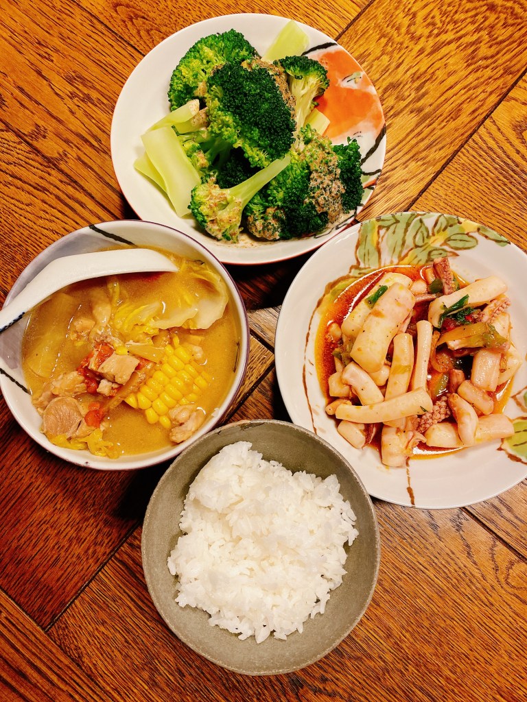 挪威先生在七點半準時地回到家,不過是帶著一個頭痛不舒服的身體回家。於是他就先去房間休息,我一個人先吃了晚餐。獨自一人的晚餐非常的棒,裝好一人份的麻油雞、辣炒透抽跟燙青花菜,倒了一杯白酒,搭配剛剛開始看的Modern Love Tokyo,很輕鬆地度過了一人晚餐時間。