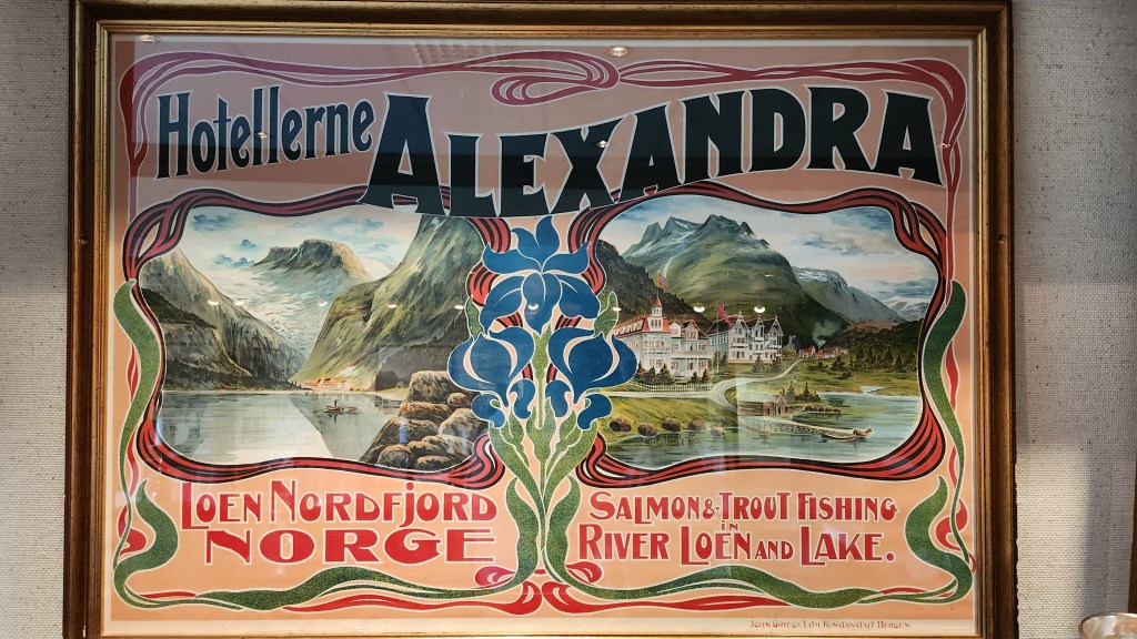 渡輪一靠岸果然開始下起雨來,而且還越下越大。往南開的選擇時間比較短,但是在往路看到的飯店每一個都客滿,下雨的話也會有很多登山客臨時入住飯店,最後剩下兩個價格比較高的飯店,我們就選擇了Loen的Alexandra飯店,上官網訂包含吃到飽的晚餐跟早餐,一個晚上四千四百克朗也不能算很貴。