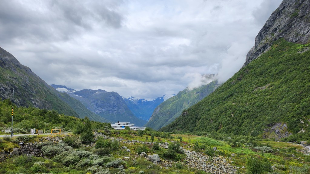 稍作停留之後我們就往回開出小鎮,接著往東要走另外一條景觀公路接回奧斯陸。這一條路也是我們前天考慮的住宿點之一,Gamle Strynefjelsvag,是一條非常古老的道路,在冰河區的山谷之中,據說也是開起來會很有趣的一條路。