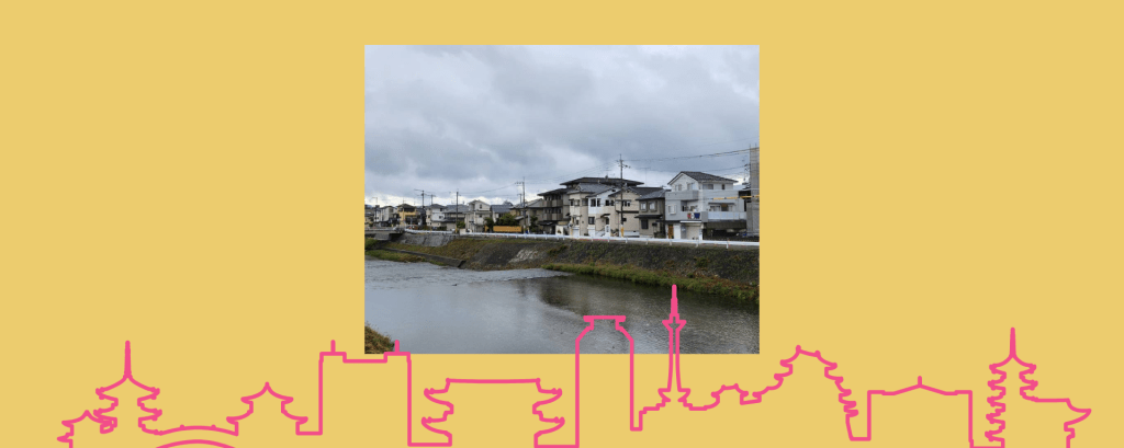 再走一下看到路邊有一個老婆婆一直往河中間看,一開始以為她在跟鴨川常有的那種長腳的白色鳥類(鵜鶘?)互動,往她的視線一看過去,咦?中間那個是什麼?是一隻小鹿斑比,直挺挺地站在河中間的沙洲草叢中間,那一瞬間我覺得我跟鹿四目相接了,跟鹿揮揮手之後,他往前走去,在我拿出手機的那一刻,趴進草叢裡了。