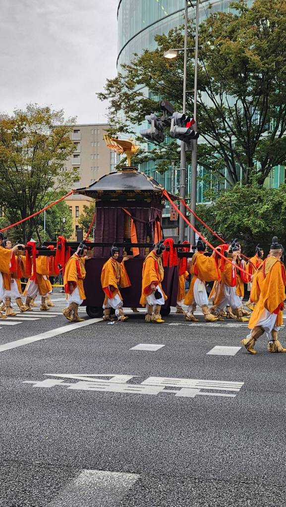 一年一度的京都時代祭在今天登場,學校下課之後會帶大家去定點觀看,這是1895年就開始的祭典(誒跟台灣被割讓同一年耶),為了慶祝平安神宮的創立跟平安遷都1100週年而舉辦的祭典,目的是重現京都繁榮的景象,採用了時代行列的形式,遊行隊伍身穿各個時代的服飾,展現當時的特色跟有名人物,從京都御所出發,到平安神宮結束,順序是從近代到古代。(當時開始的明治時代到最古的延歷時代)