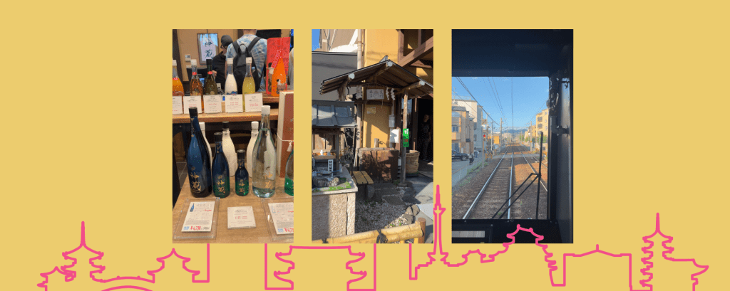 挪威先生覺得他很需要運動,於是就在電車站跟我告別自己走路回家。我零著我們買的兩瓶日本酒跟我的課本,搭上叡山電鐵,坐兩站回家了。