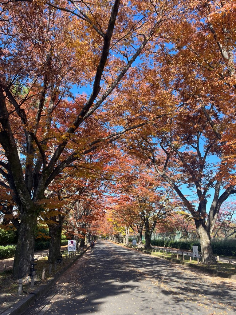 植物園入口的那條馬路,現在就是人間仙境。路旁的樹不是楓樹,但是還是轉紅了,陽光灑在樹上面,閃閃發光,前方的樹葉旋轉著落下,怎麼會有這麼美的地方?