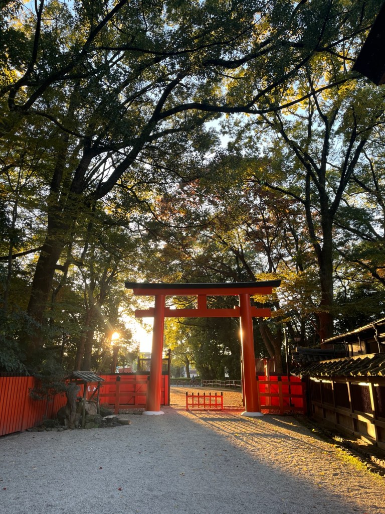 買到非常喜歡的圍巾非常高興,我們就走過去下鴨神社,神社的參道現在也非常的美,其實只要陽光很棒,那天的京都怎麼看都會很美。回家的路我們沿著河走,到了洛北阪急上去買麵包跟晚餐的蛋白質,買完出來就天黑了,京都的天黑得好快。