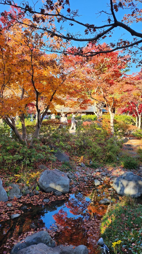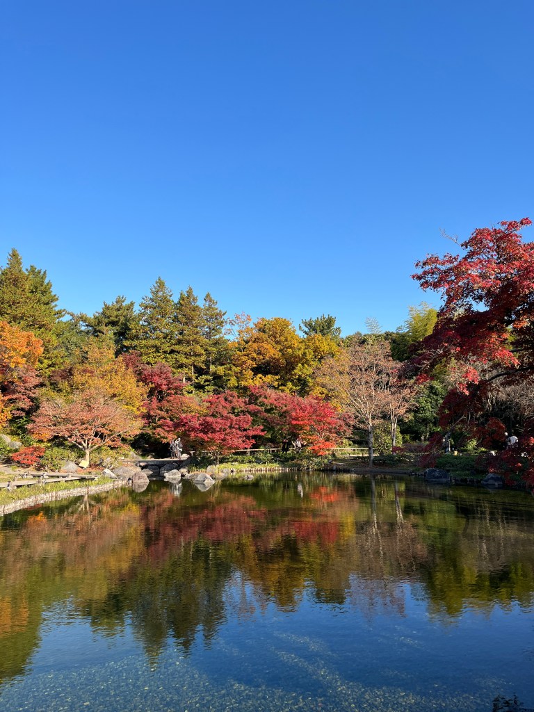 日本庭園應該是昭和公園的重點,非常、非常的美。庭園裡面有湖有橋有竹林還有很多楓葉樹,不同種類跟不同地點的楓樹都呈現不同的顏色,配著水面的反射光影,只能一直讚嘆也太美了吧,完全的失去可以形容那片景色的語言,只能給大家看照片了。