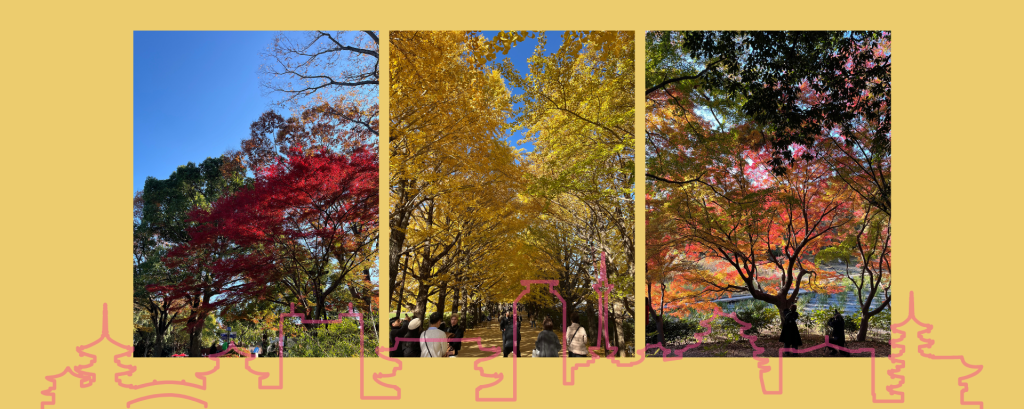 秋天的昭和公園有開放夜間參觀,主打的是一次可以看到銀杏跟楓紅,一個是後面的銀杏並木隧道,另一個在日本庭園裡面,晚上都有打燈加上音響,四點半就開始了。這邊離新宿只要半小時的車程,早點來看回到市區也不會太晚。不過我們今天傍晚要看電影,明天要跟朋友吃飯,只能來看白天的樣子。