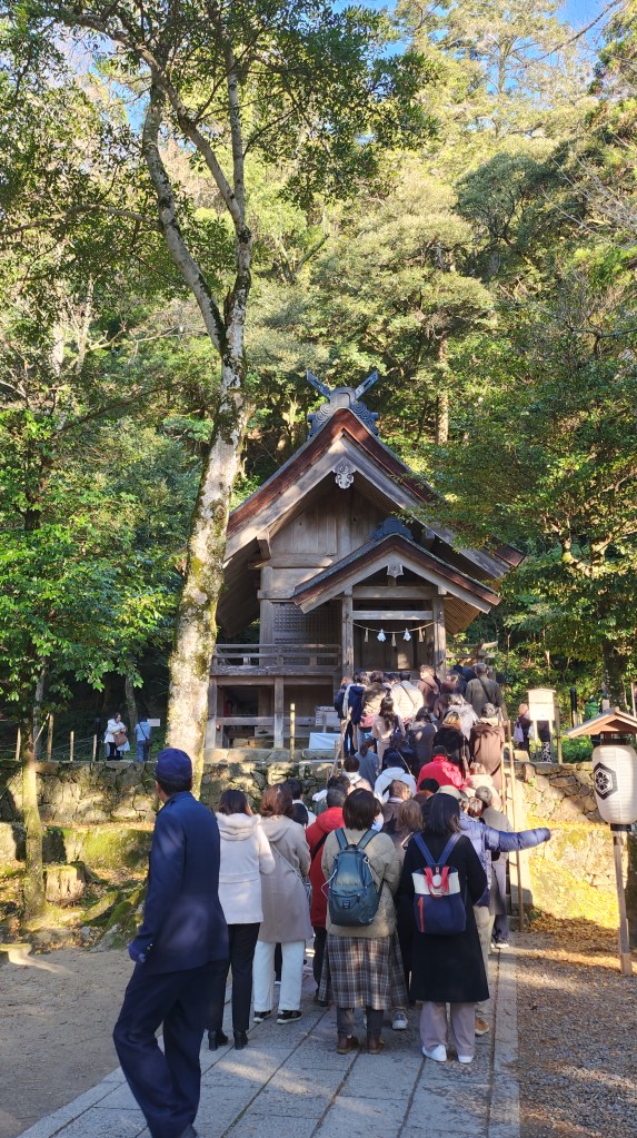 一到出雲大社人潮雖然多但因為腹地很大也不會覺得擠。出雲大社的參拜是有順序的,境內有蠻多小的神社,一走進參道右邊第一個小神社就在排隊參拜了,不過我們兩個沒有要完成全境參拜,所以就直接往前走了。