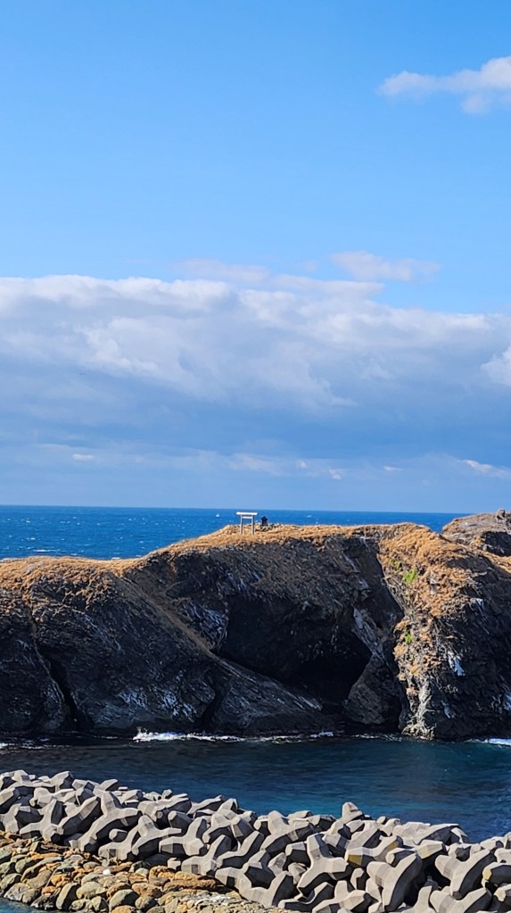 走去燈塔到路上有幾個地方可以很清楚的看到經島。上面的小鳥居跟神社是屬於日御崎神社境內範圍,只有在每年一次大祭的時候會有神職人員搭船上島舉行神是,日本的這種神社故事都很迷人。