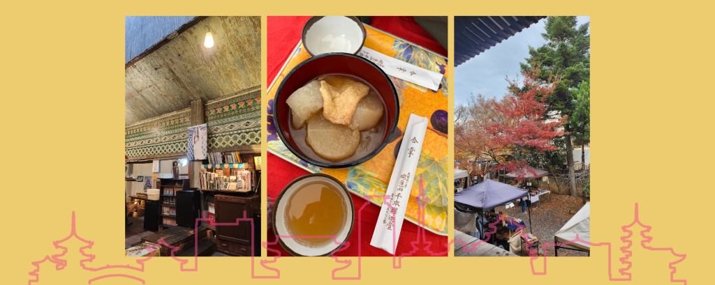 下了公車走進巷子裡,千本釋迦堂就在小巷子裡面,今天除了大根焚き,竟然還有手作市集。京都的寺廟這麼的多,果然還是要辦一些市集或是這種傳統行事才會有人過來參訪啊。
