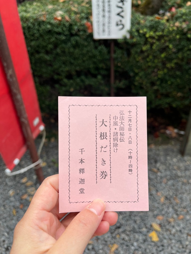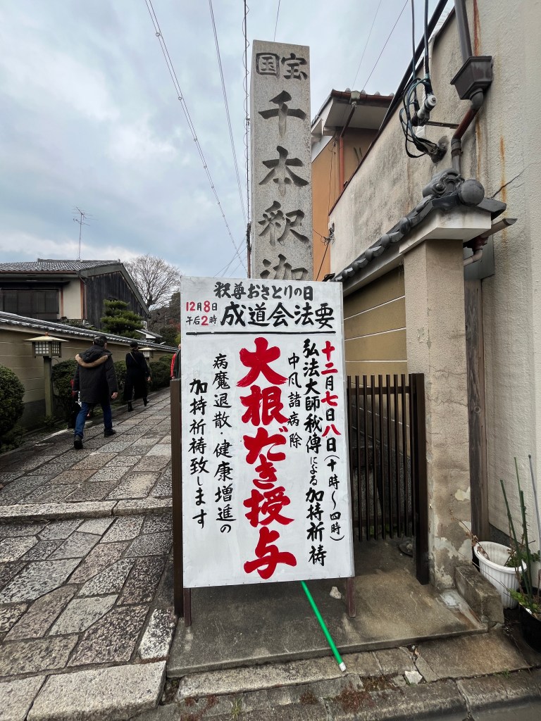 昨天看到千本釋迦堂這兩天有大根焚き,竟然這麼特別辦在星期日跟星期一,查了之後發現其實就是應該要辦在十二月八日,也就是今天。
