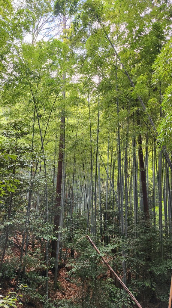 神社很小蠻可愛的,在入口還有方向標指著右邊說有竹林。好啦,有竹林又有小路又沒有人,這就是挪威人最愛的組合。我們就往竹林方向走去,一開始蠻稀疏的,後來竟然有點像是嵐山竹林的感覺,陽光很棒,風也很清爽,走在竹林中間風吹的聲音其實很療癒,而且小路上真的只有我們三個人,非常輕鬆。