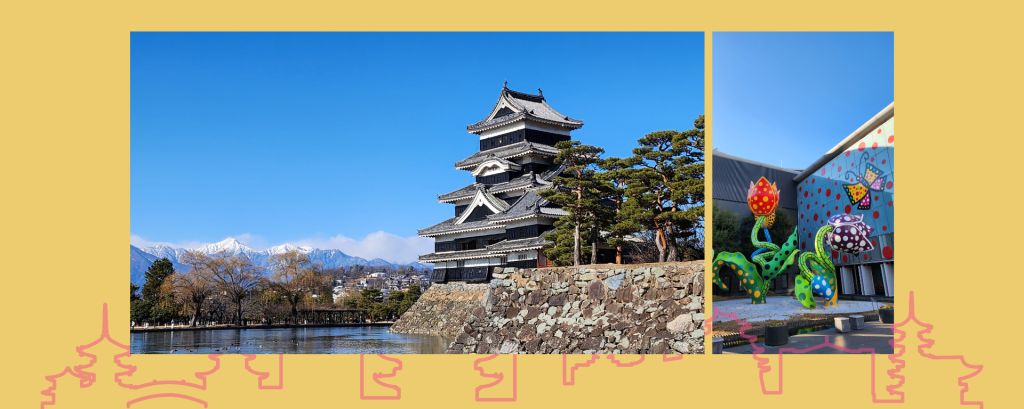 市立美術館離車站大概十五分鐘的腳程,外面就是大型的草間彌生花朵們。松本市試草間彌生的故鄉,好像時常都會有她的常設展。