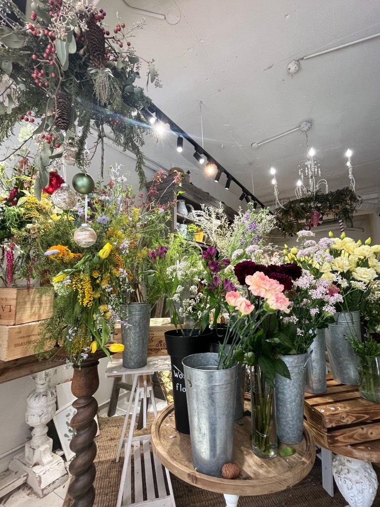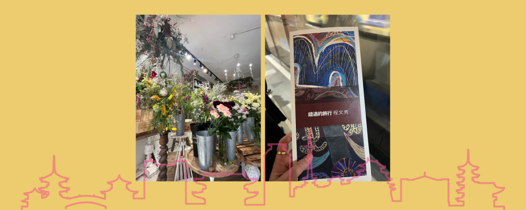 一開始我本來想說十點多就可以過去。不過經過昨天的筋膜刀按摩讓我睡到九點多才起來,又去喜歡的早餐店吃了早餐,再借了一台ubike的電動腳踏車騎到師大,想在附近找一家花店綁一束花,但是怎麼找都沒有,永康街的沒有開,最後在金山南路找到一家看起來很不錯的花店,要了一束野草般的花,就坐在店裡等她綁好。
