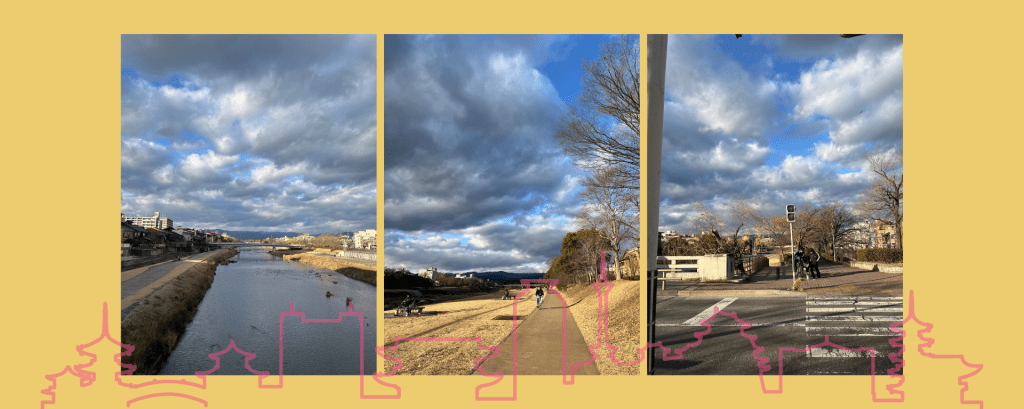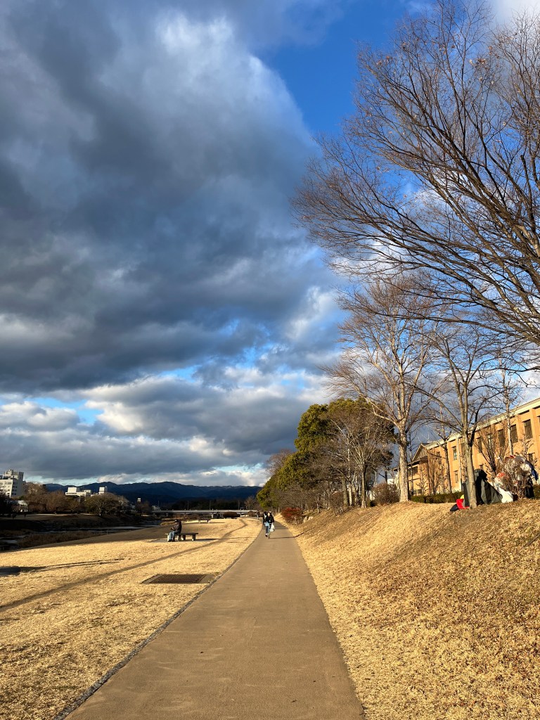 早上騎了腳踏車去上課,曬著太陽騎腳踏車其實很舒服,就像一邊移動一邊還是有暖氣在身上一樣。鴨川一如以往很美,而且在河邊跑步運動的人其實並沒有減少,京都人應該很習慣自己的冬天吧?