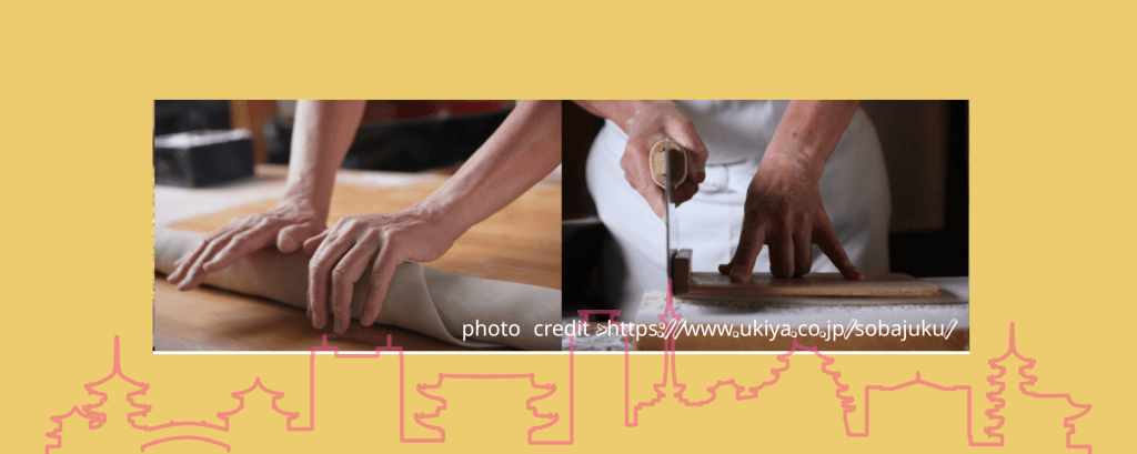兩點半一到我們先大家點名集合講解一下蕎麥麵的歷史。原來在繩文時代日本人就開始食用蕎麥,因為蕎麥營養非常的豐富,以前也是和尚們的主食,在京都非常盛行。到了江戶時代,蕎麥麵變成了像現在的拉麵店一樣,是日本的速食,變成了庶民的美食。