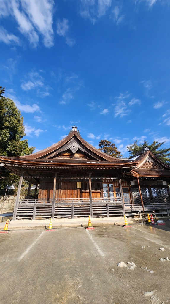 開著開著,白鬚神社它竟然就是在路邊耶,開太快還會錯過神社停車場入口。今天人很少,神社區域要往上走感覺是在山坡上面,靠近路邊有正殿,還有一個小觀景台可以上去看湖中鳥居,畢竟旁邊就是湖西道路,是不能夠穿越過去拍照的。