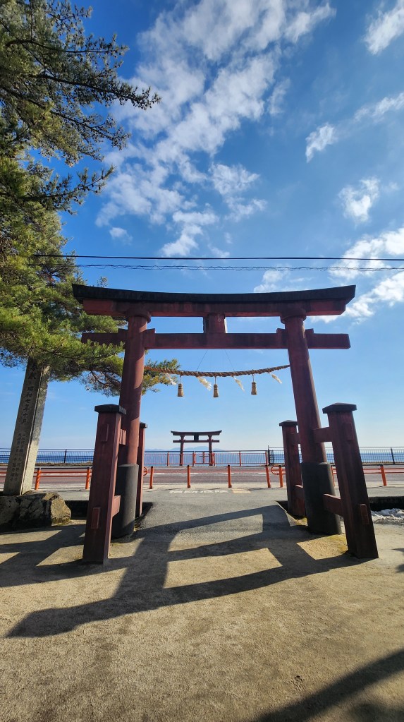 接著我們就上車繼續前往白鬚神社,離這邊其實大概四十分鐘左右的車程。白鬚神社有名的是湖中鳥居,以前只知道宮島的海中鳥居,後來發現日本其實很多地方都有在水裡面的鳥居,上次去福岡自駕也有一個。