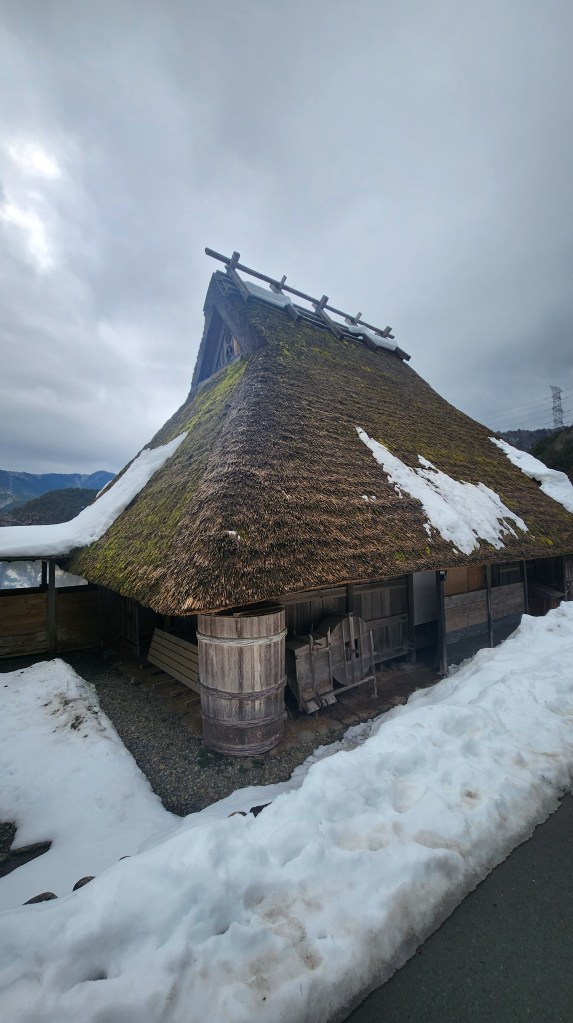 茅草屋頂真的好需要保養,看起來也非常的厚重,房子這樣被茅草壓著真的不會有問題嗎?之前下了幾場雪,散步經過的茅草屋頂都還在融雪當中,滴滴答答的,茅草排水性看起來非常的好,古人還是有跟自然一起生存的智慧啊。