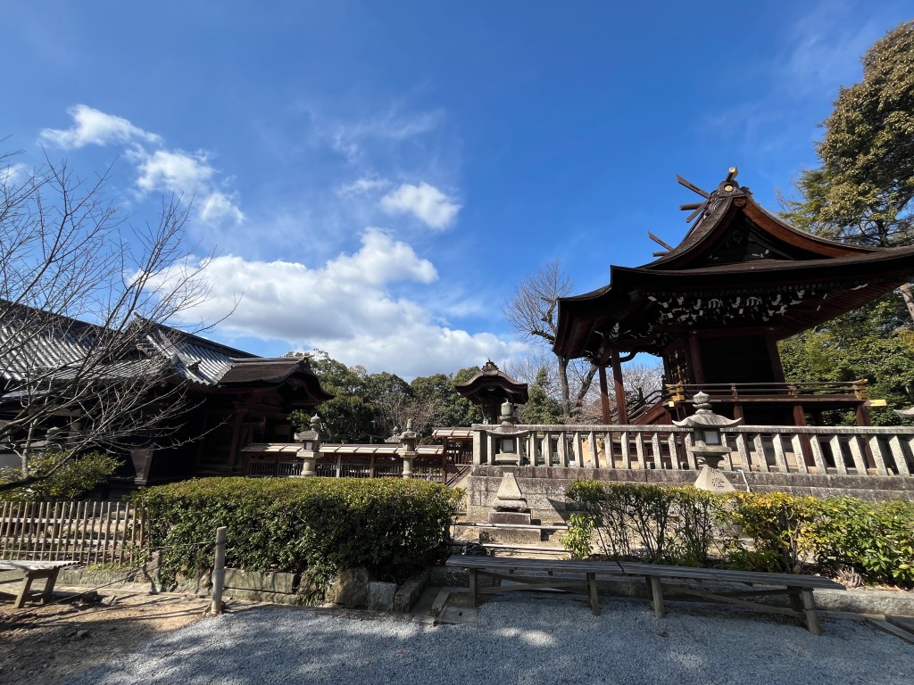 吃飽之後我們決定先把行李都打包好,這次幾乎每天都換一個飯店,我們已經有很好的打包流程了。車子如果可以放到十二點,我們就打算去阿智神社走一走,那是倉敷的在地神社,四月會有紫藤花,現在可能就是只有光禿禿的樹。