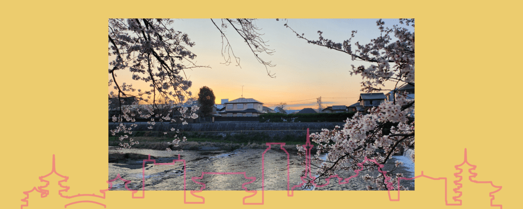 休息過後我們就從河邊散步到購物中心,接下來的目標是要買兩瓶玉乃光跟超市的零食。高野川旁的櫻花真的開的很美,好多人直接拿著野餐墊跟椅子,坐在櫻花下吃壽司跟三明治。這邊的賞花感覺非常的家常跟輕鬆,大家沒有遊客區的瘋狂拍照跟大砲相機,只有單純地坐在下面吃東西聊天。