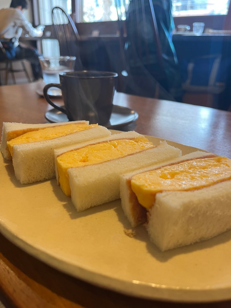 停好車走過去,幸運的拿到最後一個位置,點了招牌咖啡跟雞蛋三明治,坐在位置上慢慢地等食物過來。雞蛋三明治的確非常的好吃,厚煎的蛋卷,還抹了花生醬,總共有三塊,招牌咖啡是深培,就是我喜歡的苦咖啡口味,非常完美。