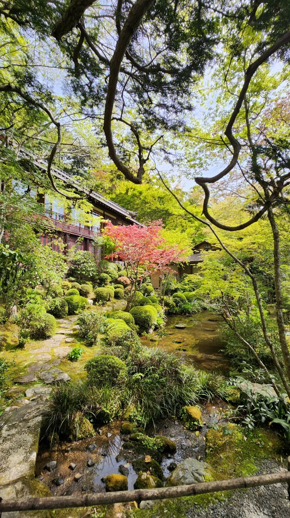 寂光院小小的風景很美逛起來很舒服,被春天環繞著的感覺很棒,境內的樹也都好大顆,我們一邊走一邊還抱了一下非常漂亮的杉樹們,得到了很多自然的力量跟芬多精。