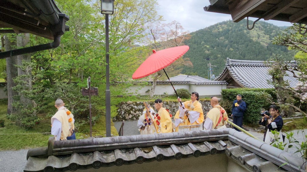 走到了接近三千院門口,看到一些特殊裝扮的人陸陸續續地走下來,難道今天有活動?難道活動已經結束了嗎?
