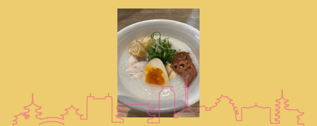 原本想要去之前朋友找到的一家咖啡廳吃午餐,結果咖啡廳的午餐選項很普通,看了之後就決定還是往教室方向繼續走看看有沒有什麼其他的選擇。在走在富小路上的時候,突然撇到一家粥店,照片看起來很不錯,就決定進去吃了。