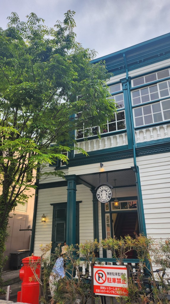 一開始先走到了星巴克,在日本他們很會跟地方政府合作,拿下有形文化財,開一個有當地氣氛的咖啡店,在京都有二年坂跟园山公園的,神戶就有異人館的。