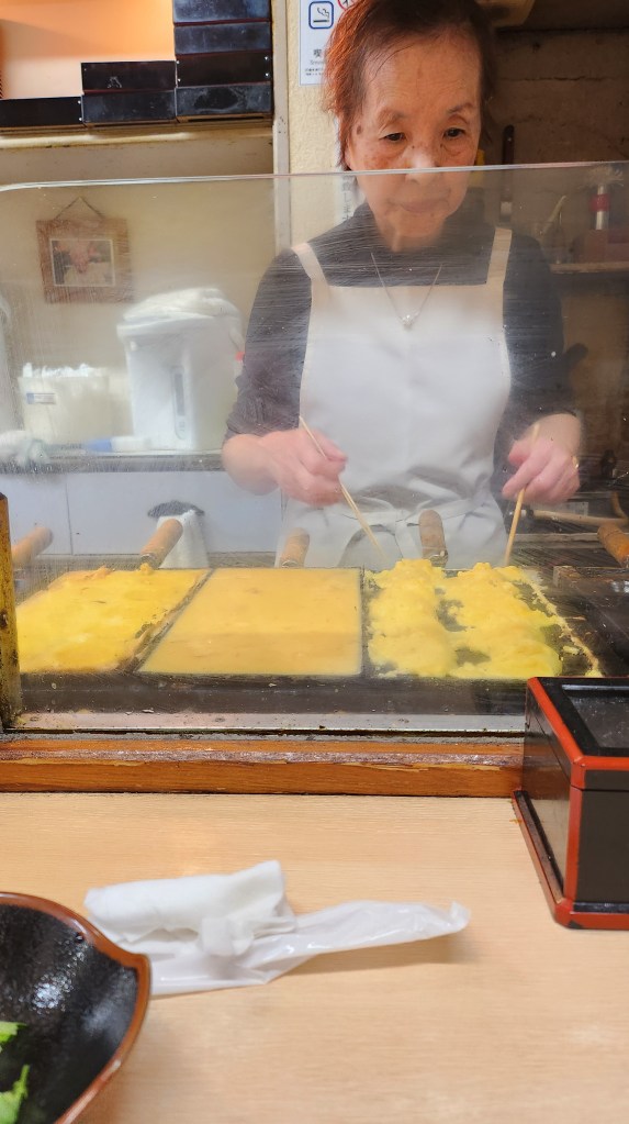 明石燒很好吃耶,店裡的醬汁也很棒,高湯也非常好喝。我們還點了大根、牛筋跟油豆腐的關東煮,非常入味。唯一美中不足的是朋友想點麥燒酌,老婆婆聽成梅酒,我們更正了之後,雖然看起來好像已經理解了,但還是上了梅酒來。